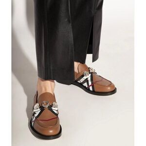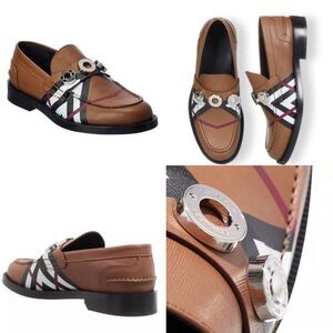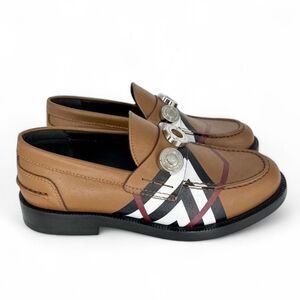BURBERRY Women's Broadbrook Brown Nova Check Silver Hardware Loafers Siz…