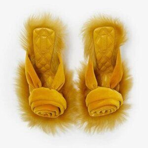 BURBERRY YELLOW VELVET & SHEARLING STEP ROSE SANDALS SIZE 37.5 NIB