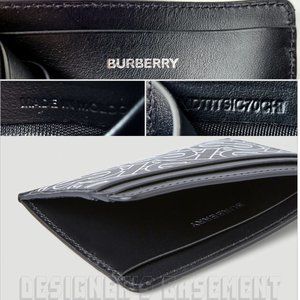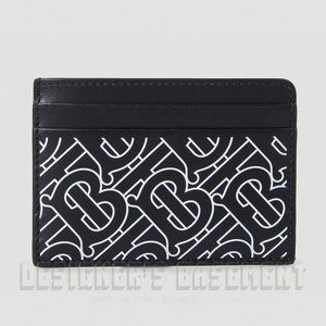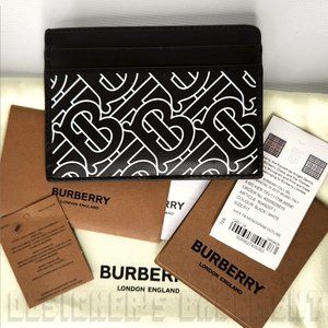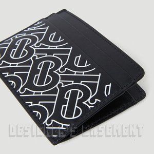 Brand New Authentic BURBERRY black calf Leather KIER white TB Monogram Outline print card case