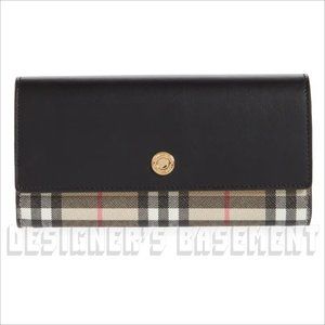 BURBERRY black leather HALTON Vintage Check coated canvas Continental Wallet NWT