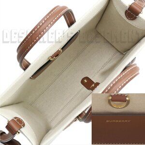 Brand New Authentic BURBERRY natural ivory canvas FREA Horseferry Logo pocket brown leather trim Crossbody Mini Tote Bag