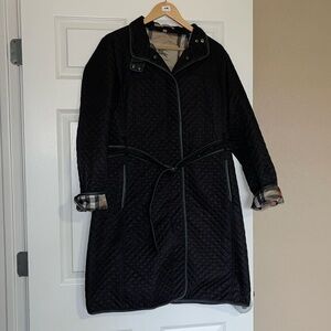Women's BURBERRY London Quilted Long Jacket Coat Check Lined sz L- MADE IN USA