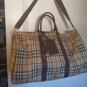 BURBERRY vintage BROWN HAYMARKET CHECK COATED CANVAS DUFFLE BAG incl key and tag