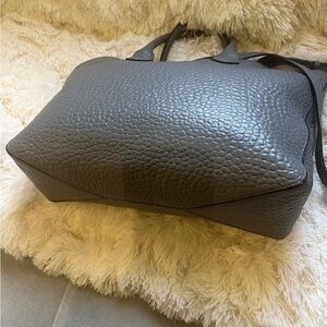 black leather tote with textured finish. Sturdy handles and elegant design. Perfect for everyday use.
