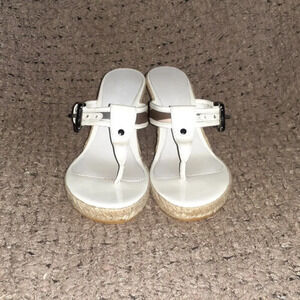 BURBERRY-ITCON30LUN-Ivory Patent w/ Nova Check-Wedge Espadrille-Sz 40-Near Mint