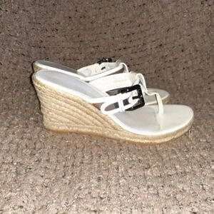 Size 40, measures 10" via insole, 3.5" wedge heel and 3.5" wide.