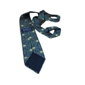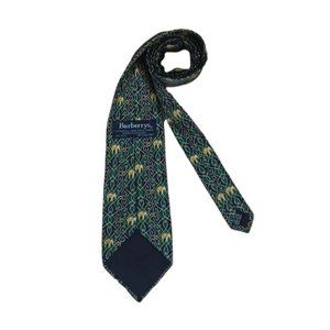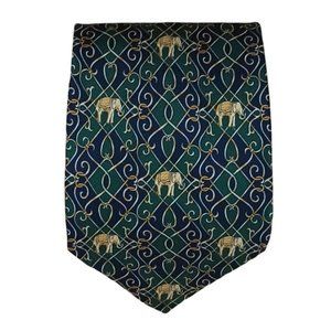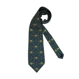 BURBERRYS Green Geometric Elephant Silk Tie HANDMADE ENGLAND 60"/ 3.6" EC
