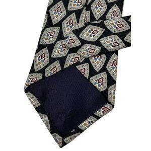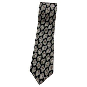 BURBERRYS Men's 100% Silk Necktie LUXURY Tie Black Geometric W:3.8" EUC