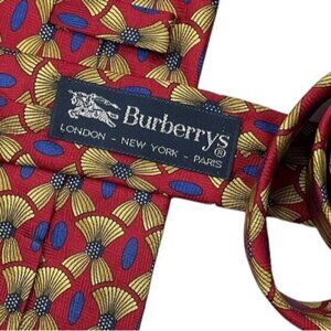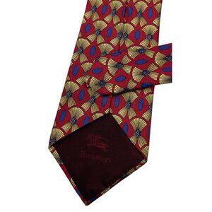 BURBERRYS Men's 100% Silk Necktie LUXURY Tie Red Geometric W:3.7" EUC