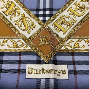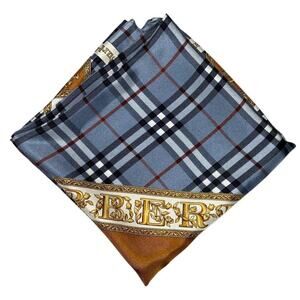 BURBERRYS PRORSUM Logo Blue x Brown Silk Scarf
