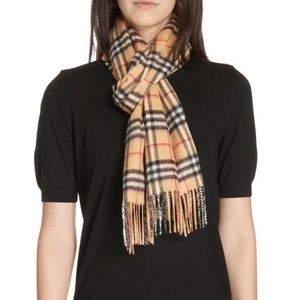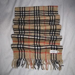 BURBERRYS Pure Cashmere Nova Plaid Scarf Tan Black Red Natural 12 x 53