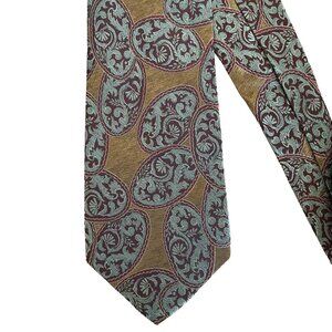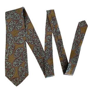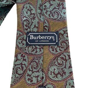BURBERRYS of London VINTAGE Textured Tie Paisley Gold Maroon 58" X 3.75" USA
