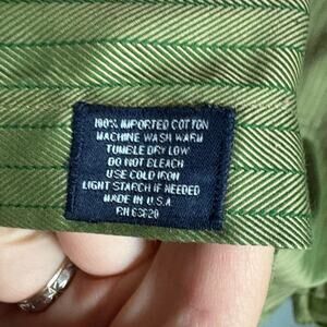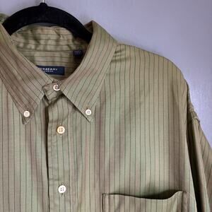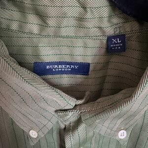 BURBURRY LONDON Men's XL Green Herringbone 100% Cotton Button Up Collar Classic