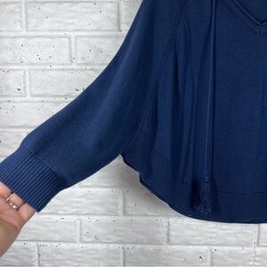 BURGESS The Tess Poncho Sweater | Hello Sailor Navy Blue V-neck Tassel Tie