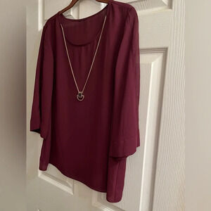 BURGUNDY BLOUSE~WITH~DETACHABLE NECKLACE~