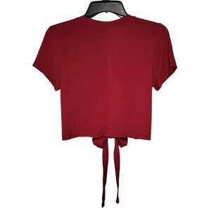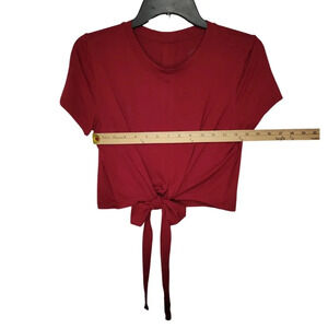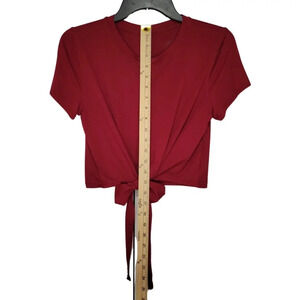 BURGUNDY Crop With Tie Waist Short Sleeve Top Women's Size Small