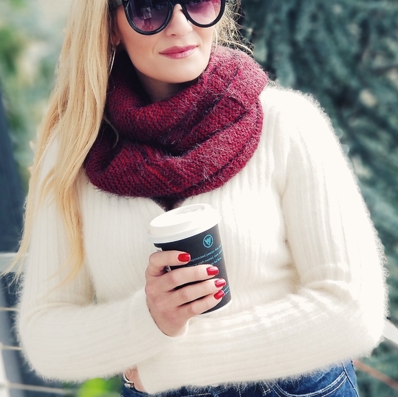 Beautiful Burgundy fuzzy knit infinity scarf! This is the perfect gift for yourself or someone you love!