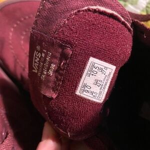 BURGUNDY VANS HIGH TOPS / SIZE US WOMENS 10.5 / MENS 9 SK8-HI