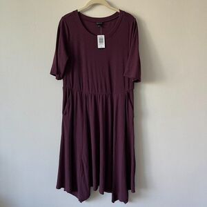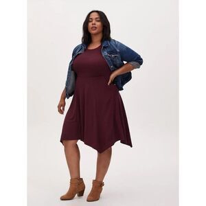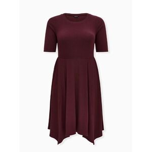 BURGUNDY PURPLE RIB HANDKERCHIEF SKATER DRESS