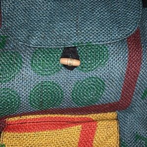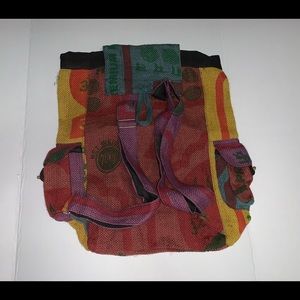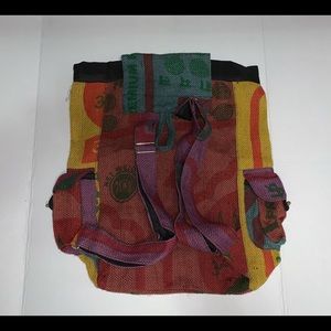 🎒 Backpack # Burlap #Drawstring Closure#Adjustable Straps#Nwot#100%Recycle JUTE# Multicolored