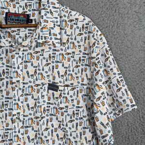 BURLEBO Button Front Shirt Men's XL Multicolor Beer Crawfish