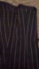 Victorian overbust steel boned long line pinstripe corset has clip fastening and laces.