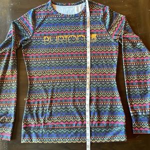 BURTON DryRide Base Layer Shirt BURTON Top *DryRide* Long Sleeve Shirt Tribal Aztec Print Base Layer Size M This cute thermal top will keep you dry and warm. Thumb holes on cuffs