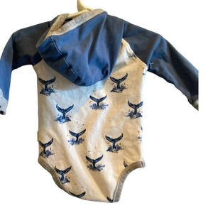 BURTS BEES EUC BABY BOYS WHALES ONSIE TOP SHIRT TEE HOODIE FALL SIZE 3 6 MONTHS