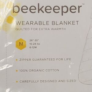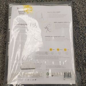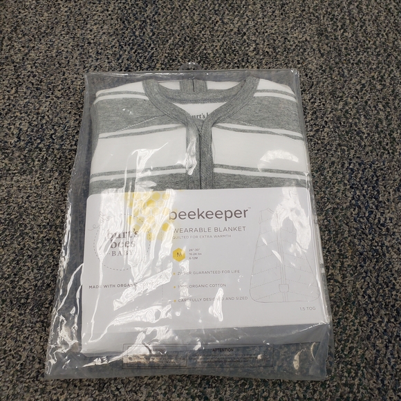 BURTS BEES Gray and White Striped Baby Beekeeper Swaddling Blanket Wrap Medium.