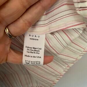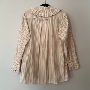 BURU Cream Pink Stripe Button Down Blouse Peter Pan Collar Women's size Medium