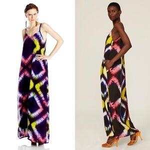 Take it breezy in this Busayo Collective maxi dress done in a lively tie-dye diamond print and billowy silhouette. This maxi is a perfect summer dress. It's vibrant and a perfect canvas to accentuate with accessories.