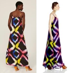 BUSAYO African Hand Dyed Colorful Geometric Print Sleeveless Maxi Slip Dress M