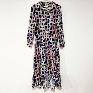 BUSAYO Collective Midi Shirtdress Front Button Closure Hi-Lo Hem Blue Size Small