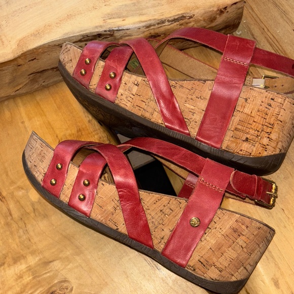 BUSSOLA Formentera Red Leather Cross Straps Wedge Sandals | Size EU 39 / US 8