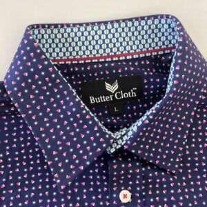 BUTTER CLOTH Shirt Collared Button Up Size Large Contrast Cuffs COTTON Business