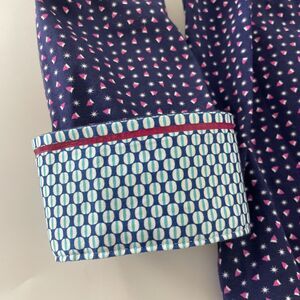 FEATURES: Contrasting inner collar and cuffs; machine washable on delicate cycle.