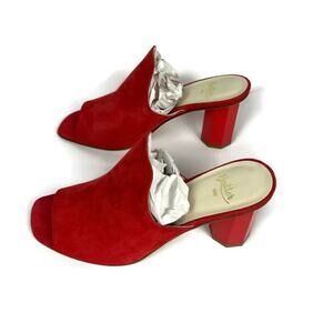 BUTTER Made in Italy Gilda Red Suede Mule Octagonal Heel Sofia Loren Size 7