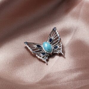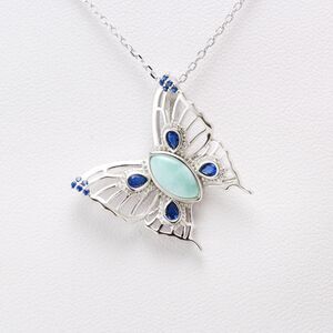 This vintage butterfly necklace is made with 100% natural genuine rare Larimar stone from Dominican Republic, lab created sapphire and solid 925 sterling silver w/ Rhodium gold plating for better quality and prolonged shine!