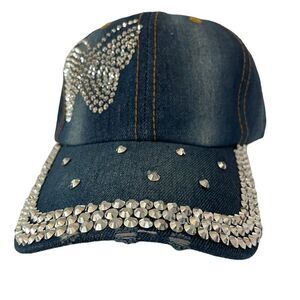 BUTTERFLY RHINESTONE DENIM BASEBALL CAP