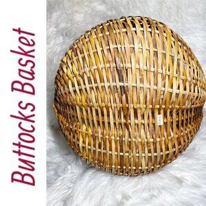 BUTTOCKS BASKET VTG Large Handmade Splint Ribbed Farmhouse Cottage