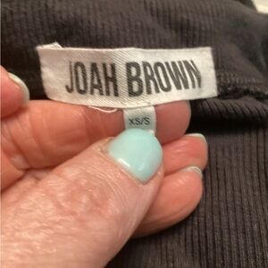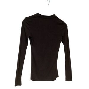 Joah Brown long sleeve button down henley in black rib. Feel a subtle pop of texture in this tight knit ribbed fabric. It is stretchy, comfortable and forms perfectly to you body.