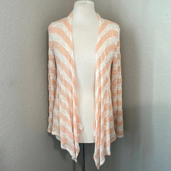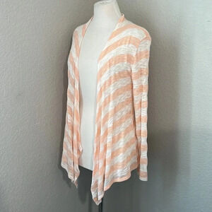 Buttons brand lightweight cardigan. Size medium, pretty peach and white striped colors! Long sleeve with waterfall front. In great condition! Stretchy fabric! Measurement below taken laying flat. Feel free to ask any questions! Open to offers on all items and offer great deals on bundles!