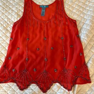 BUTTONS, sllevwless blouse, beautiful beading, may be a loose or missing bead, otherwise great condition