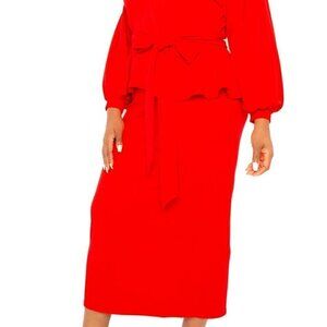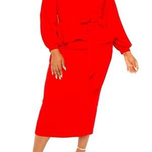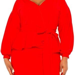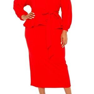 BUXOM COUTURE Peplum Midi Bodycon Dress in Bold Red- Size 1X