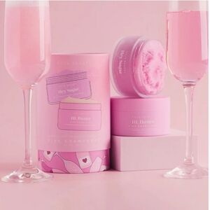 What's better than one serving of Pink Champagne? Two! Scrub down, butter up with this pink champagne scented body care duo. This body scrub and body butter sets contains a 100 ml size Hey, Sugar pink champagne body scrub and a 100 ml size Hi, Butter pink champagne body butter. Let's toast to soft, smooth skin!
