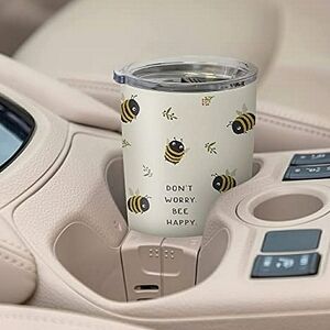 Insulated Stainless-Steel Tumbler by Studio Oh! - Don't Worry. Bee Happy.- 17-Ounce - Double-Walled with Vacuum Seal Keeps Liquids Cold for Hours - Fits Standard Size Cup Holders
