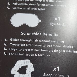 Includes one standard-sized pillowcase, one eye mask, and one scrunchie
