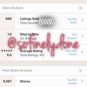 Check out my current stats and love notes -- over 1,400 listings sold and a perfect 5.0 average rating! I hope to add you to my list of happy buyers! Thank you for shopping my closet and for your kind reviews! 😍♥️👗