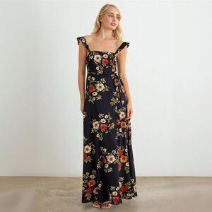 BUY NOW SALE Navy Floral Smocked Ruffle Strap Maxi Dress