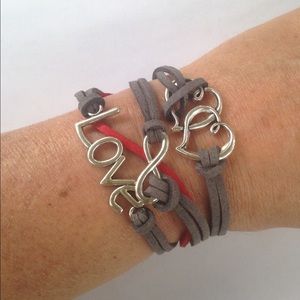 Silver tone grey & red leather. Buy One Get One on these bracelets. In package. NWOT from wholesaler.